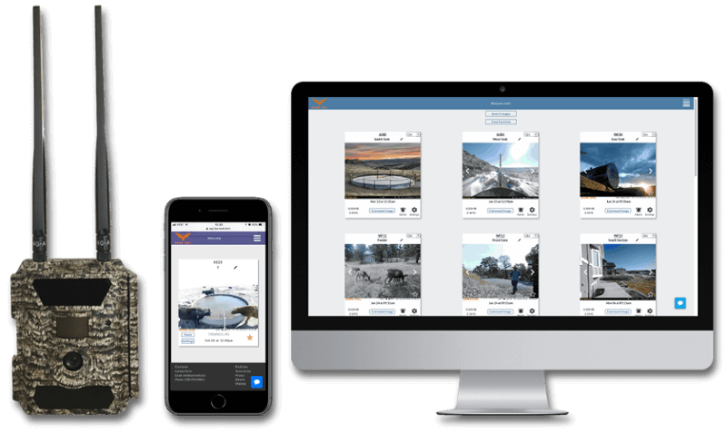 To combine hardware and software, we were inspired by monarch SCADA which is a controls architecture platform used in cities for buildings, water flow, vehicle GPS tracking, fire monitoring and suppression systems. We adapted compact urban architecture to ranches that have assets spread over hundreds of square miles. It takes a long time to drive around and check if there is water in the water tank, is the gate closed, is there feed? Now with cameras, people are using it for multiple applications from security for cabins and fuel tanks to checking if the corn was watered and then remotely turning on sprinklers. All cameras are connected via cellular network to cell towers to an AWS Lambda backend for image processing and then displayed on our Bubble app to customers.