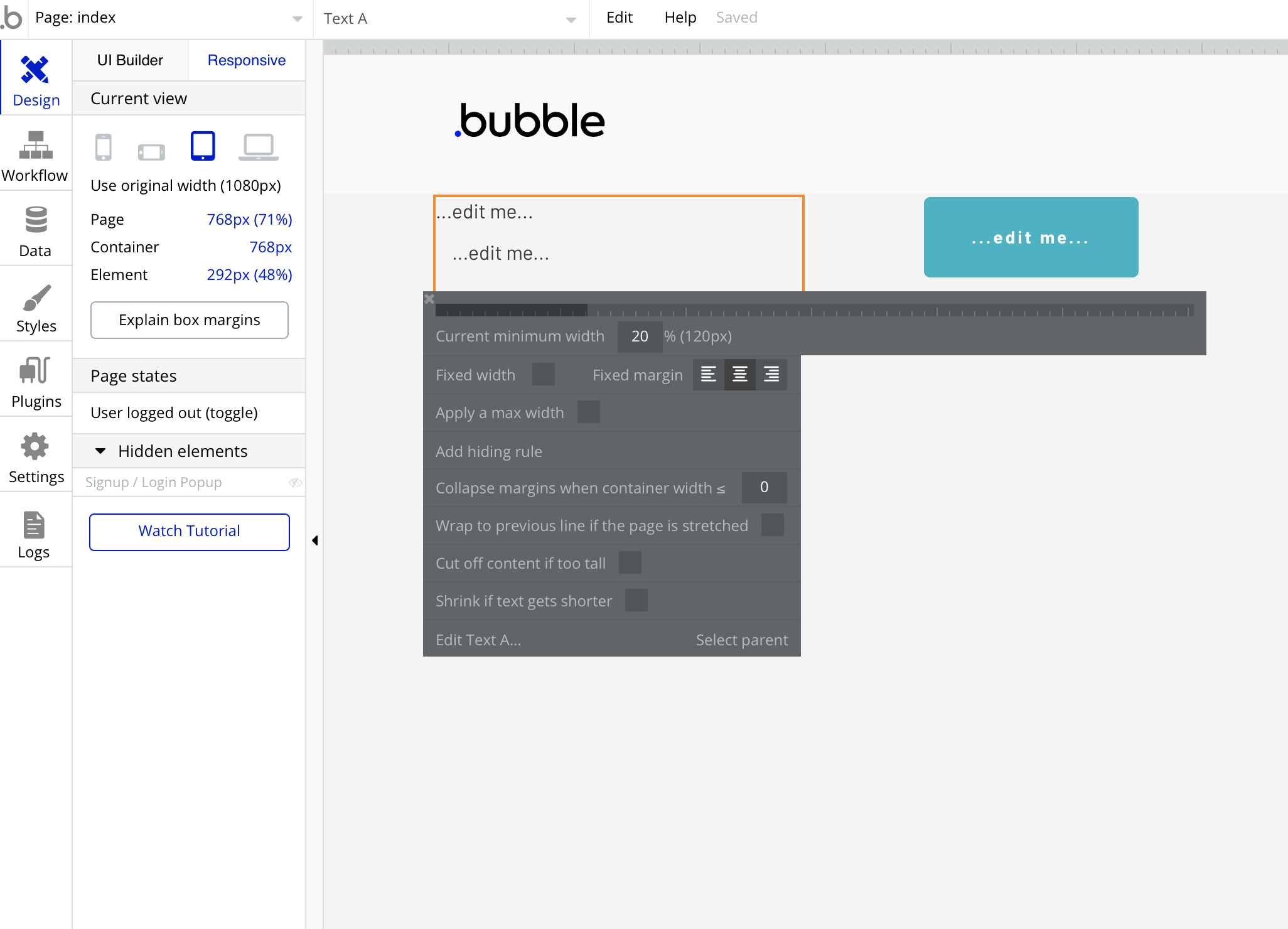You can create projects for different devices on Studio, due to the differences in dimensions. Bubble features a single responsive design to fit various device dimensions.
