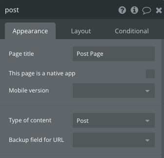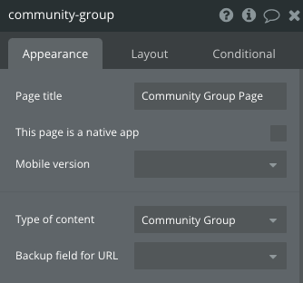Whenever users click on a specific community group link, we want to show them posts relevant to that community. We’ll again make use of Bubble’s ability to dynamically show data and create a single “community-group” page to achieve this.