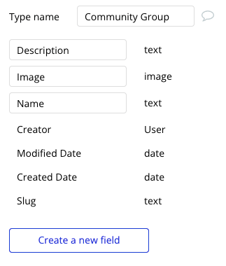 Bubble’s pre-built database makes it easy to create different data types with unique fields. When building your Indie Hackers clone as an MVP, we’ll need to create the following data types and fields.