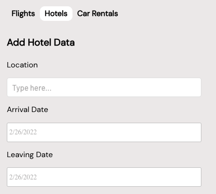 Let's then apply similar logic to the groups that contain our Hotel and Car Rentals input elements.