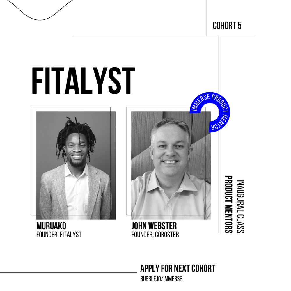 "John has provided outstanding support despite being 15 hours ahead in Australia. He is intrinsically motivated to help us reach our goals and I'm looking forward to leaning on his expertise well after the Immerse program!” - John Muruako, founder of Fitalyst