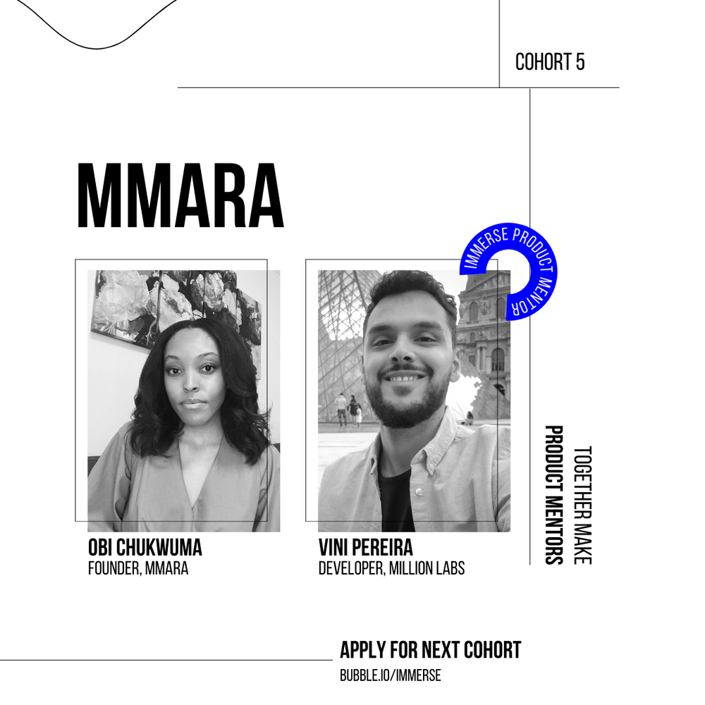 Obi Chukwuma, founder of Mmara: "Before meeting with my product mentor I was genuinely concerned about my ability, as a non-coder, to implement some advanced technical functionality that is needed for my app. But after meeting with him, not only did he reassure me that what I was doing was possible, he really taught me the basics of understanding API’s and other more complex features, and now I feel a new sense of excitement as I explore what the platform can really do!"