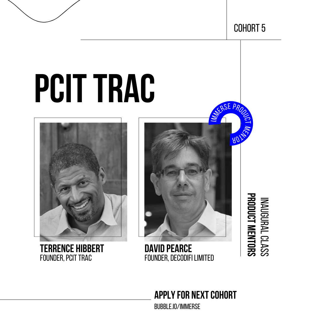 "At first, when I heard we were getting a mentor, I was excited. Then I thought, what do I do with a mentor and got a little nervous. Our first call was good, my mentor is experienced, kind and very willing to help, which is surprising given how busy he is! Now we communicate about issues I’m having in Bubble and the business I’m trying to build, it’s getting better and better." - Terrence Hibbert, founder of PCIT Trac