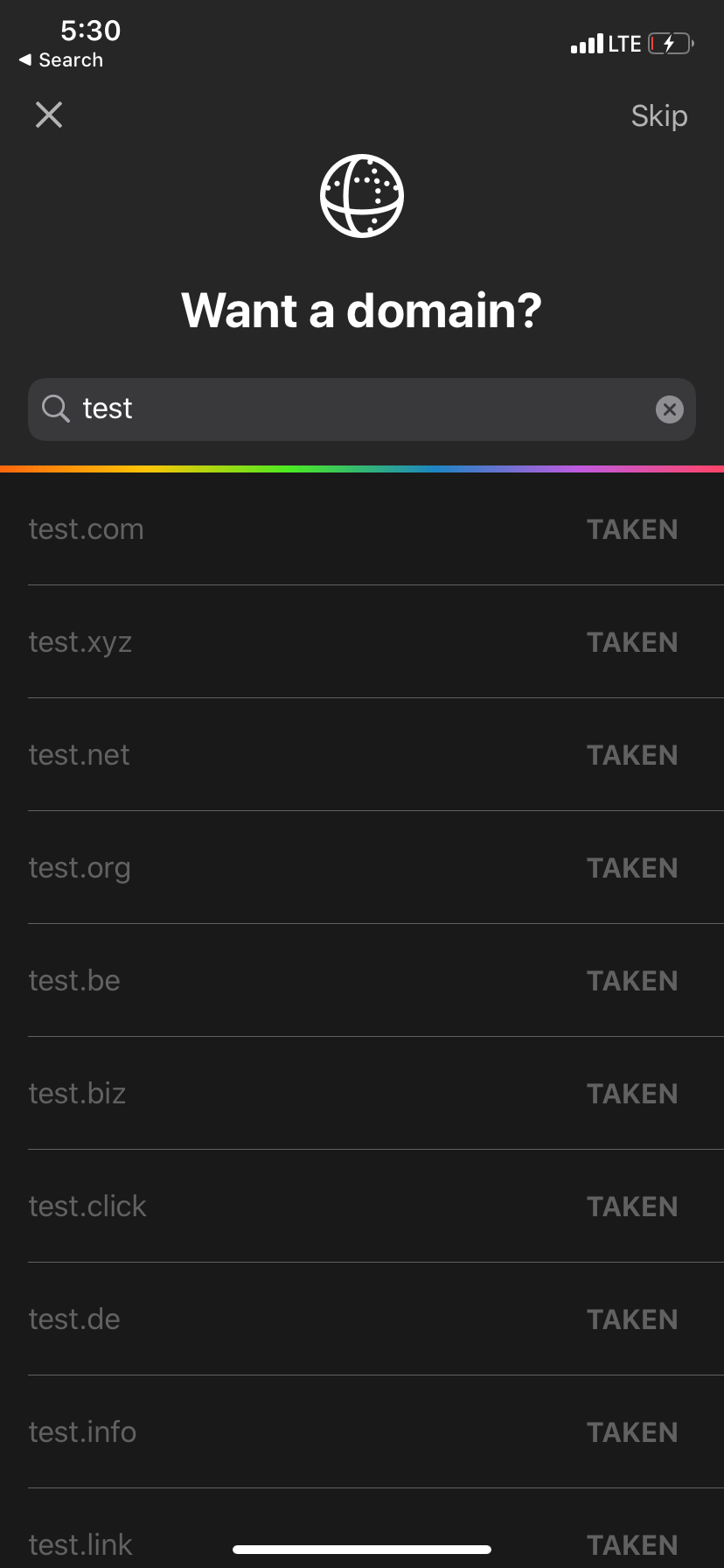 The Universe app allows users to find their domain and start building their own site in minutes.
