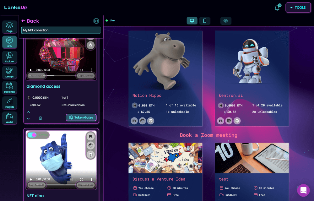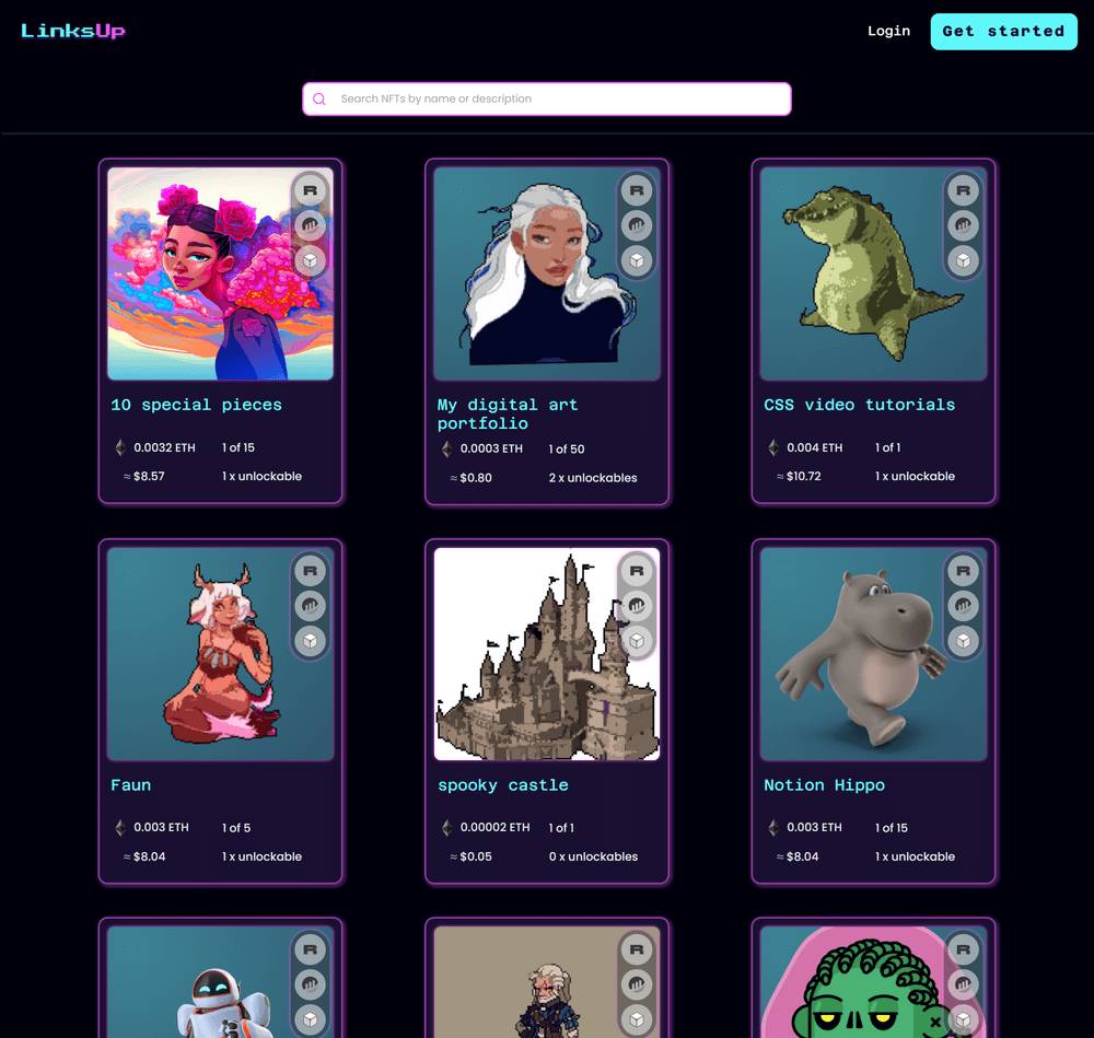 Users can mint NFTs with unlockable content, showcase these on a marketplace, create digital services - all done seamlessly on LinksUp